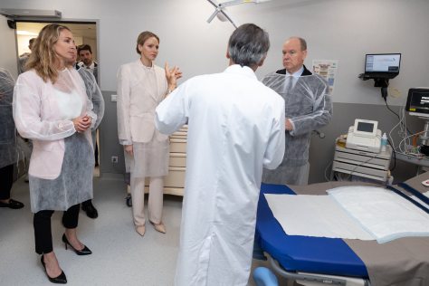 The ceremony included the unveiling of a commemorative plaque within the obstetric emergency unit, followed by a tour of the facility. Accompanied by the Minister of the State of the Principality of Monaco, Mr. Christophe Mirmand, the Director of the Centre Hospitalier Princesse Grace, Ms. Benoîte Rousseau de Sevelinges, and the Chief of the Maternity Department at the Centre Hospitalier Princesse Grace, Professor Bruno Carbonne, the Princely Couple visited several of the newly developed spaces, including a double parental room, a birthing suite, a hydrotherapy room, and upgraded obstetric care units.