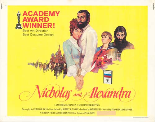 This 1971 film won the Oscar for Best Costume design and Best Art Direction. And, yes, my Mother named me after the last Tsarina of Russia, Alexandra. She, Tsarina Alexandra, was a bit of a idiotic twit. But, thankfully, I’m not. 🙂 LOL Nevertheless, this film is a classic. Every once and a while this film is shown on AMC; see it if you can. Nicholas and Alexandra: Part One