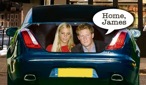 Yeah, they are really keeping a low profile when some big burly security guards are moving luggage from the trunk to the backseat of a car, in front of a well-known nightclub, so that a hot blonde and a six-foot something royal red-head can shove themselves into the trunk.