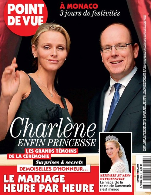 H.S.H. Prince Albert II of Monaco and the soon-to-be princess of Monaco, Charlene, are currently on the cover of this week’s edition of Point de Vue. The image was shot during a brief balcony appearance during the Saint Jean religious procession last week. So, if you happen to see the issue on your local newsstand buy it. Within the issue there is a nice article about the couple.