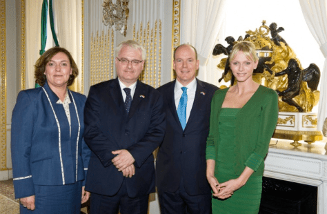 This afternoon T.S.H.s Prince Albert II and Princess Charlene of Monaco officially welcomed the President of the Republic of Croatia, Ivo Josipovic, and his wife to Monaco at the Palais Princier de Monaco.