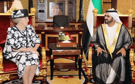 On January 9, 2012, Her Majesty Queen Beatrix of the Netherlands along with T.R.H.s Prince Willem-Alexander of Oranje and Princess Maxima of the Netherlands continued their two-day state visit to the United Arab Emirates.