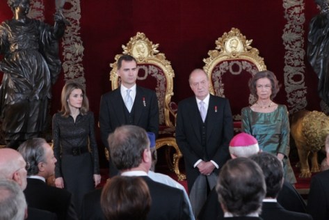 On January 24, 2012, Their Majesties King Juan Carlos I and Queen Sofia of Spain along with Their Royal Highnesses Prince Felipe and Princess Letizia of Asturias participated in a reception to welcome members of the diplomatic corps in Spain held at the royal palace in Madrid. Also in attendance were Prime Minister Mariano Rajoy, Minister of Foreign Affairs, José Manuel García-Margallo and many others.