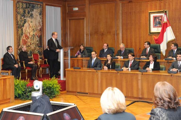 On February 2, 2012, Their Serene Highnesses Prince Albert II and Princess Charlene of Monaco made a rare appearance at the Conseil National (National Council) in Monaco.