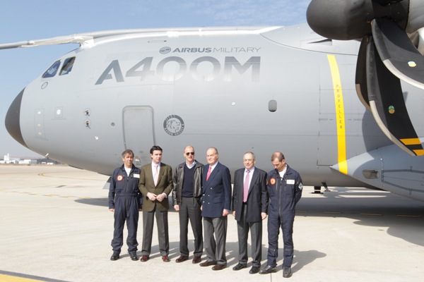 His Majesty King Juan Carlos I of Spain flew in the new aircraft the Military Airbus A400M which took off from Torrejon Air Base on March 1, 2012. His Majesty was accompanied by the Minister of Industry, Energy and Tourism, Mr. José Manuel Soria, Mr. José Jiménez Ruiz, the Delegate Director (CEO) of Airbus, Mr. Tom Enders, and Airbus Military President and Chairman of EADS CASA, Mr. Domingo Ureña.