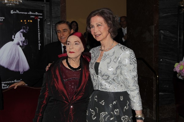 This evening at the Teatro de la Zarzuela in Madrid, Her Majesty Queen Sofia of Spain attended a gala tribute in honor of legendary Cuban prima ballerina, Ms. Alicia Alonso.