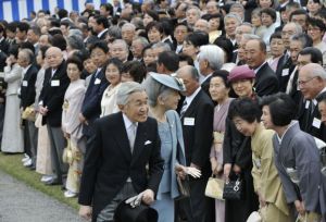 On April 19, 2012, Their Imperial Majesties Emperor Akihito and Empress Michiko of Japan hosted a lovely garden party for “… 2,500 dignitaries and foreign envoys…” at Akasaka Palace in Tokyo. Also, in attendance were His Imperial Highness Crown Prince Naruhito of Japan, Their Imperial Highnesses Prince Akishino and Princess Kiko, astronaut Satoshi Furukawa, and the Japanese Prime Minister, Mr. Yoshihiko Noda to name a few.