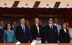 Prince Albert’s cousins, Elisabeth-Anne de Massy and Chris Le Vine were also there, along with Elisabeth’s daughter Melanie and Chris’s wife Vickie. Chris and Vickie were behind them, on either side of Charlene. Melanie was in the pink jacket next to Elisabeth, and Elisabeth is on the opposite side of Albert from Charlene.