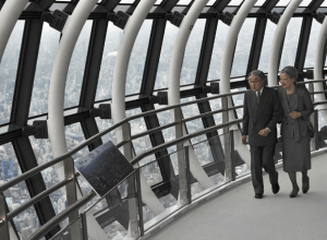 According to the Imperial Household Agency, “The imperial couple viewed the sight of Tokyo on the 450-meter second deck after hearing an explanation about the 634-meter tower.”