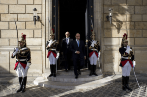 On May 16, 2012, His Serene Highness Prince Albert II of Monaco was in Paris, France visiting the Musée National de la Légion d’Honneur. Upon his arrival the sovereign prince was welcomed by the Grand Chancellor of the Legion of Honour, General Jean-Louis Georgelin, then received “…received the honours of a Republican guard detachment.”