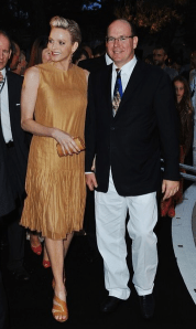 Their Serene Highnesses Prince Albert II and Princess Charlene of Monaco attended the 2012 Amber Lounge Fashion show held at the Le Meridien Plaza Hotel in Monaco on May 25, 2012.