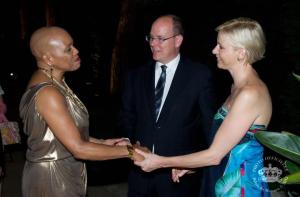 On July 7, 2012, Their Serene Highnesses Prince Albert II and Princess Charlene of Monaco attended an evening concert entitled, Summer Dream, “… held for the benefit of the Fondation Prince Albert II de Monaco…” at the Palais Princier. Guests listened to violinist, Mr. Maxim Vengerov, the Dee Dee Bridgewater Quintet, pianist Ms. Shani Diluka and more. Afterward, there was a lovely cocktail party.