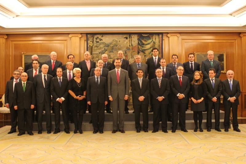 His Royal Highness Prince Felipe of Asturias held audiences at Palacio de la Zarzuela this afternoon with representatives from Pleno de la Cámara Oficial de Comercio e Industria de Ciudad Real, participants as well as organizers from the primer Congreso Internacional de Derecho Digital and members from the Comisión Ejecutiva de la Asociación de Jóvenes Empresarios de Melilla.