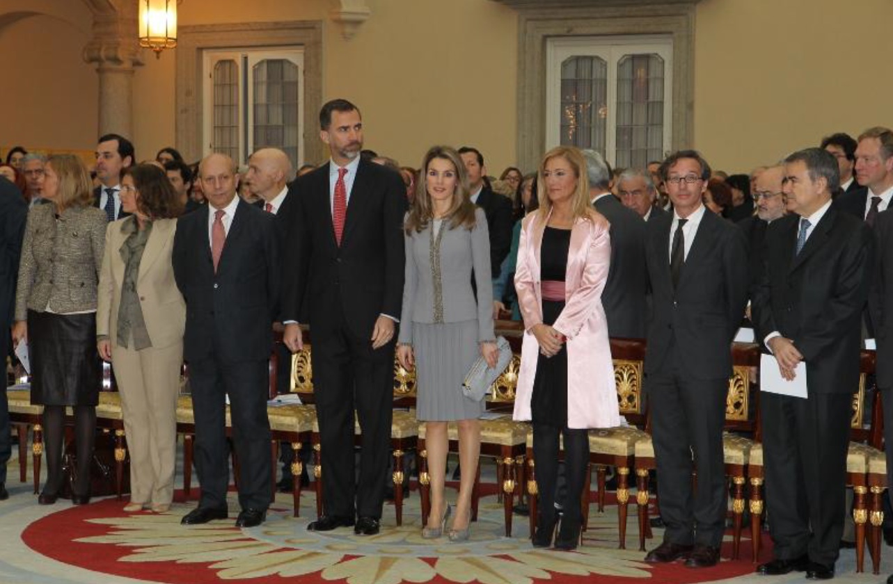 On February 19, 2013, Their Royal Highnesses Prince Felipe and Princess Letizia of Asturias attended the Premios Nacionales de Cultura (National Culture Awards) 2011 for 2012 held at the Palacio Real de El Pardo in Madrid. During today’s ceremony the prince gave a speech and presented 53 awards to worthy recipients.