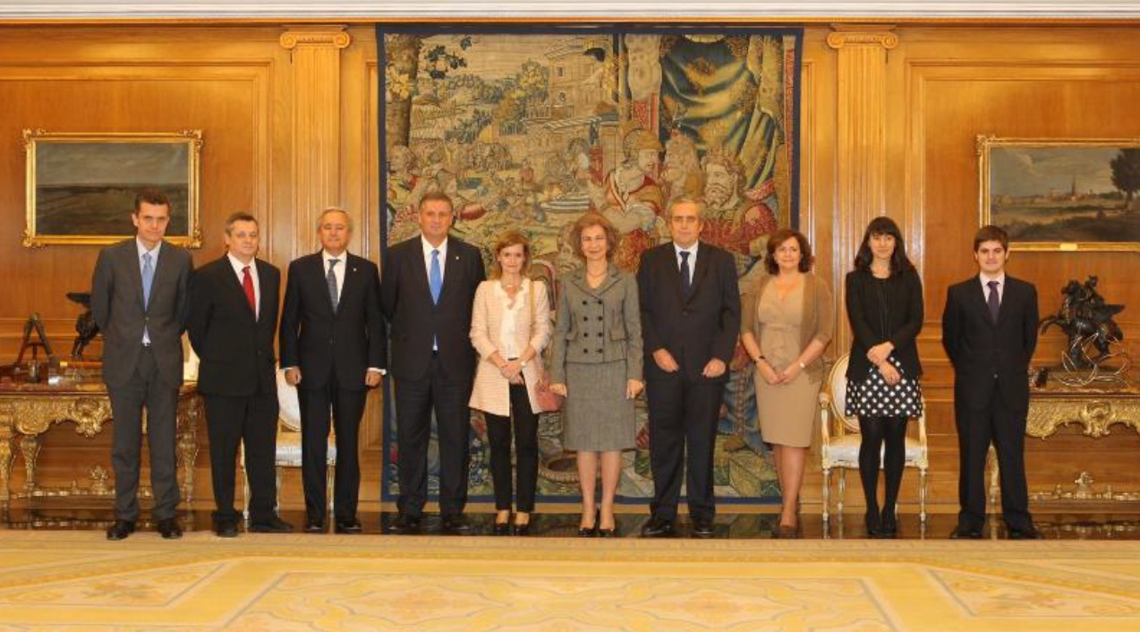 On March 12, 2013, Her Majesty Queen Sofia of Spain held at audience with representatives from the Laboratorios Normon at Palacio de la Zarzuela in Madrid.