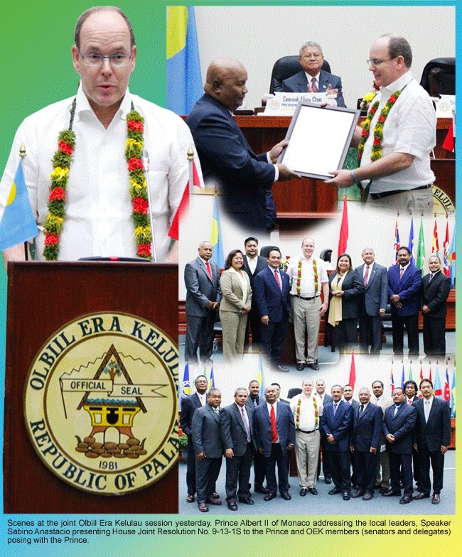 “…Chambers of the National Congress [the Olbill Era Kelulau] where he gave a speech. [The sovereign prince] highlighted the similarity of views between the Principality and Palau on the Planet’s major environmental problems, in particular the consequences of global warming and the preservation of biodiversity.