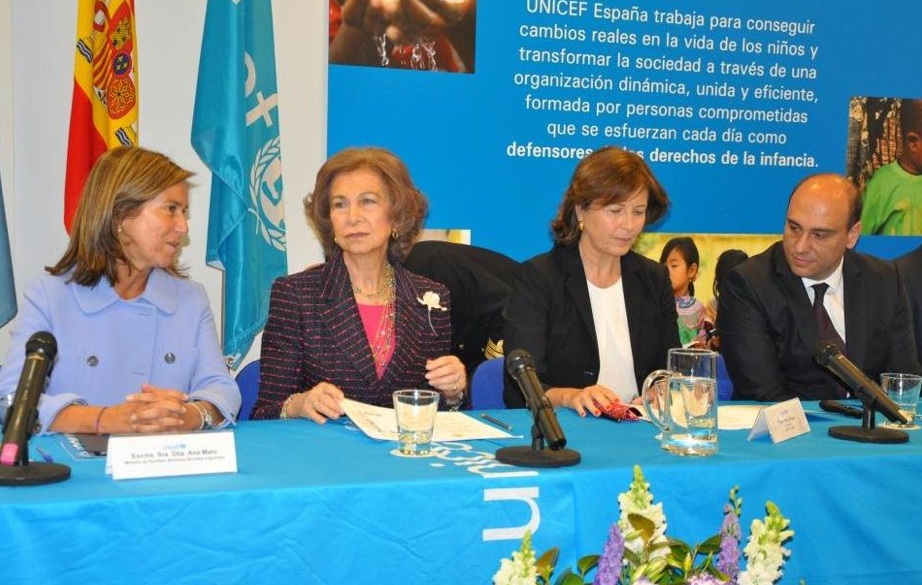 Her Majesty Queen Sofia of Spain, as Honorary President, presided over a special meeting with UNICEF España Board of Trustees this afternoon in Madrid. Her Majesty, accompanied by the Minister of Health, Social Services and Equality, Ms. Ana Mateo, was informed about UNICEF España’s “…priorities of the organization and its strategic plan to continue to achieve results for vulnerable children.”