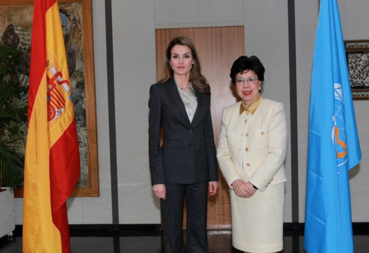 On April 11, 2013, Her Royal Highness Princess Letizia of Asturias traveled to Geneva, Switzerland to participate in various meetings with representatives of the World Health Organization.