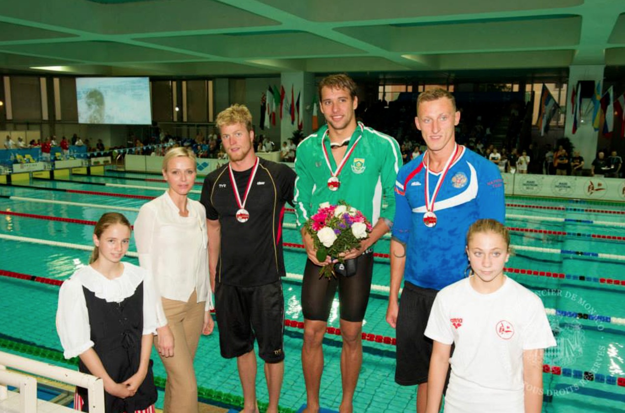 On Sunday, June 9, 2013, Her Serene Highness Princess Charlene of Monaco arrived at the Stade Louis II in Monaco to attend the final day of the 31st Edition Meeting International de Natation Mare Nostrum Monaco. Also in attendance was His Serene Highness Prince Albert II of Monaco.