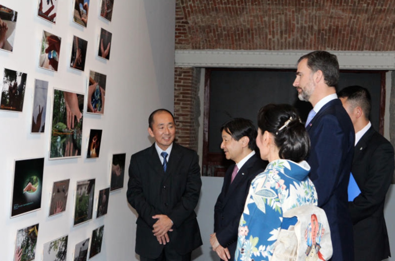 Once lunch was over the crown prince and prince attended the inauguration of the exhibition, Sin Perder Contra la Lluvia: Una Visión de la Reconstrucción Tras el Tsunami de Japón, held at the Centro Cultural Conde Duque in Madrid. The exhibition shows photos as well as documents displaying the devastation brought on by the March 11, 2011, earthquake and tsunami that devastated the prefectures of Miyagi and Fukushima located in northeastern Japan. A highlight of the exhibit are photos of “…the heros of Fukishima…” by Japanese photojournalist, Mr. Kazuma Obara.