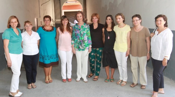 On August 12, 2013, Her Majesty Queen Sofia of Spain arrived at the Fundación Joana Barceló in Palma on the island of Mallorca to visit the facilities of the organization, Cáritas Mallorca. The organization aids the socially and economically disadvantaged.