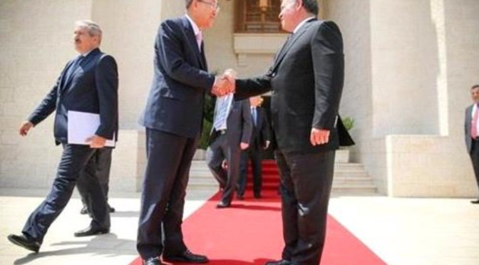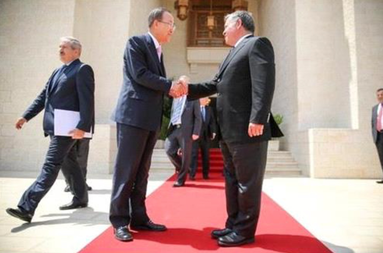 On Thursday, August 15, 2013, His Majesty King Abdullah II of Jordan welcomed United Nations Secretary-General, Mr. Ban Ki-moon, to Al Hummar Palace in Amman.