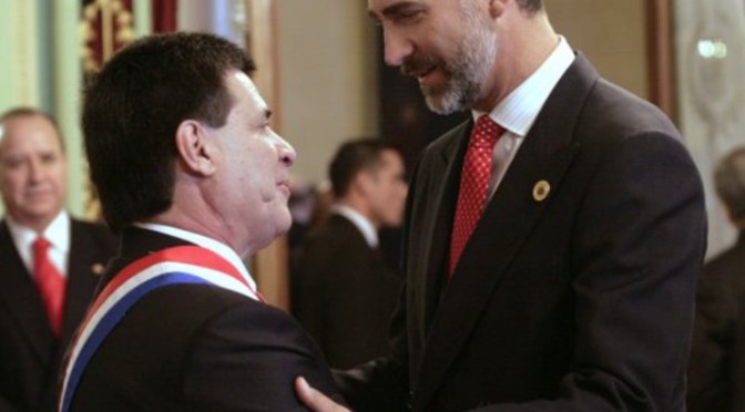 His Royal Highness Prince Felipe of Asturias attended the inauguration of Paraguay’s new President, Mr. Horacio Cartes, this afternoon in Asunción.