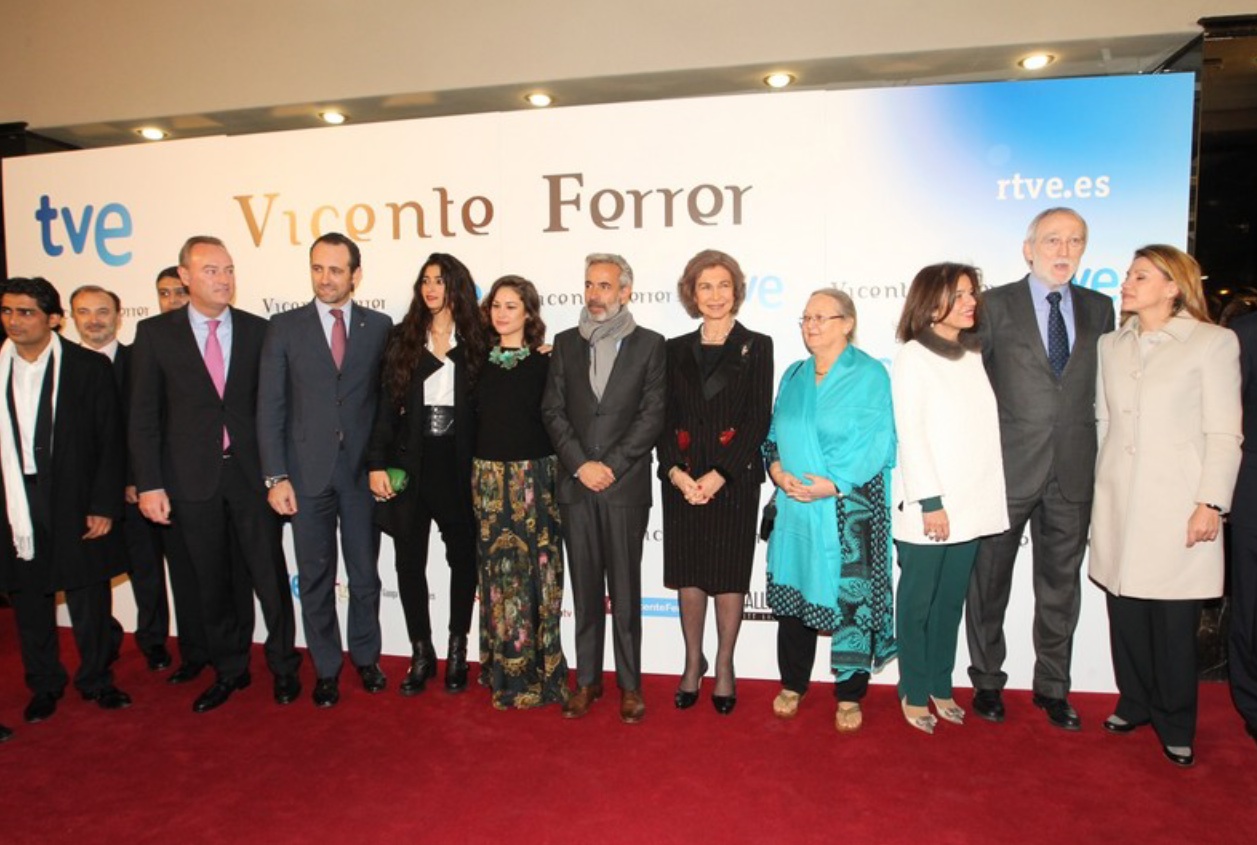 On the evening of January 9, 2014, Her Majesty Queen Sofia of Spain arrived at the Cine Callao in Madrid to attend the première of the film, Vicente Ferrer, directed Mr. Agustín Crespí.