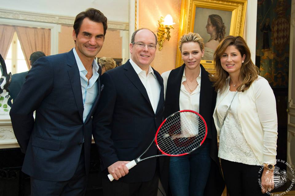 On Saturday, April 11, 2015, Their Serene Highnesses Prince Albert II and Princess Charlene of Monaco along with Baroness Elizabeth-Ann de Massy and her daughter, Mélanie-Antoinette, met with tennis legends, Mr. Roger Federer, and Mr. Željko Franulović, at the Palais Princier.