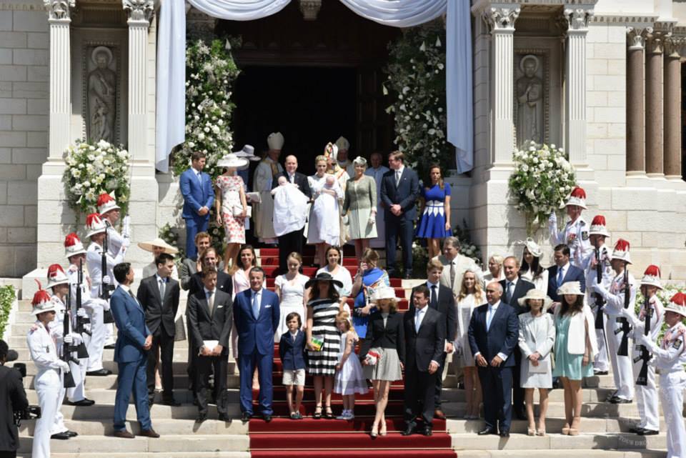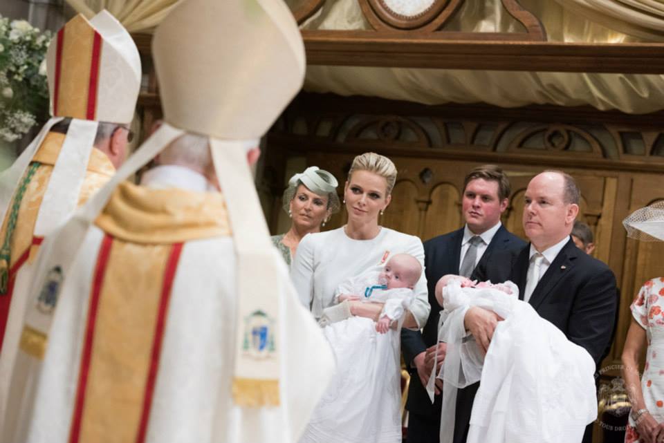 On the morning of Sunday, May 10, 2015, His Serene Highness Prince Jacques Honoré Rainier of Monaco, Marquis of Baux and Her Serene Highness Princess Gabriella Thérèse Marie of Monaco, Countess of Carladès, were baptized (in the Roman Catholic faith) during obligatory Sunday Mass at the Cathédrale de Monaco. The baptism was presided over by Archbishop Bernard Barsi. The godparents for HSH Hereditary Prince Jacques are: Mr. Christopher LeVine, Jr. and Mrs. Diane de Polignac Nigra. For HSH Princess Gabriella the godparents are: Mr. Gareth Wittstock and Mrs. Nerine Pienaar.