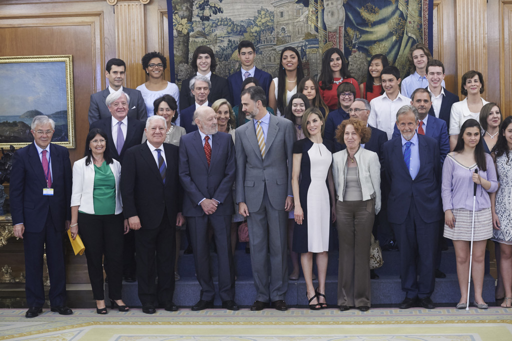 The reigning couple met with representatives from the Spanish magazine, Semena. The well-known publishing house is celebrating their 75th anniversary this year. Later, Their Majesties met with members of the Fundación Comité Español de los Colegios del Mundo Unido and representatives from several companies who are collaborating with the Alianza para la Formación Profesional Dual, an initative of the Fundación Bertelsmann, la Fundación Princesa de Girona, la Confederación Española de Organizaciones Empresariales (CEOE), and the Cámara de Comercio de España.
