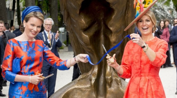 On Wednesday, May 20, 2015, Her Majesty Queen Mathilde of Belgium and Her Majesty Queen Maxima of the Netherlands arrived at the Lange Voorhout in Den Haag to view the exhibition, Vormidable: Contemporary Flemish Sculpture. This special exhibition is being held on the occasion of the 20th anniversary of cultural cooperation between Flanders and The Netherlands.