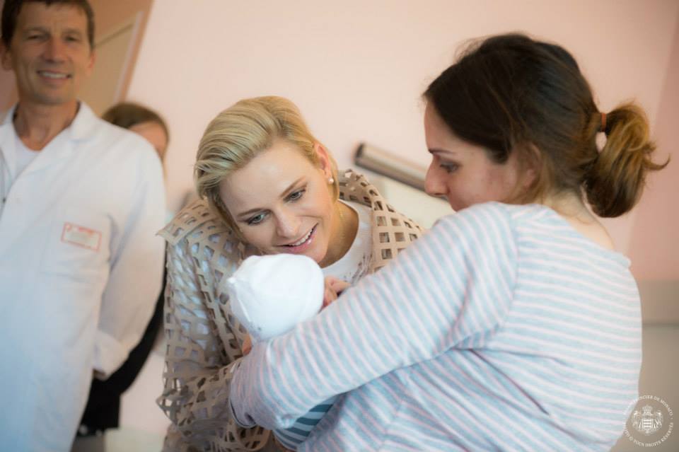 Recently, Her Serene Highness Princess Charlene of Monaco visited the maternity ward at the Centre Hospitalier Princesse Grace in Monte-Carlo on the occasion of Fête des Mères. During her visit the princess met with doctors, nurses, representatives from the Croix-Rouge Monégasque, as well as mothers and their newborn children.