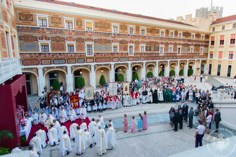 After the blessing of the alter in Palais Prinicer courtyard the procession made their way into the Chapelle Palatine led by Archbisop Bernard Barsi.