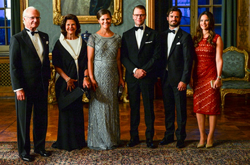 On the evening of Friday, September 4, 2015, Their Majesties King Carl XVI Gustaf and Queen Silvia of Sweden accompanied by Their Royal Highnesses Crown Princess Victoria and Prince Daniel of Sweden and Their Royal Highnesses Prince Carl Philip and Princess Sofia of Sweden attended the annual Sverigemiddag (Sweden Dinner) held at the Kungliga Slott in Stockholm.
