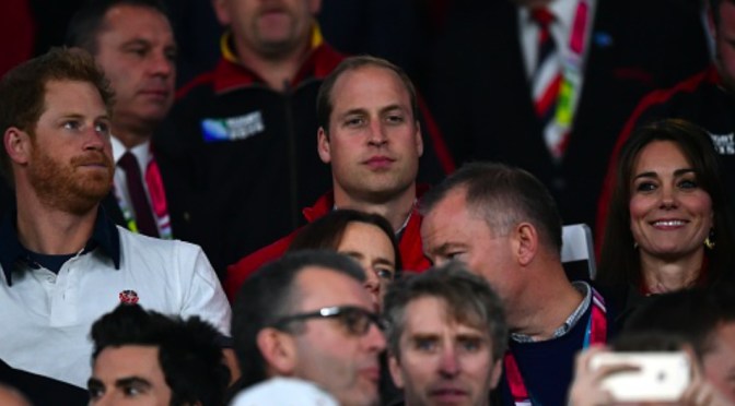 On Saturday, September 26, 2015, Their Royal Highnesses The Duke and Duchess of Cambridge accompanied by His Royal Highness Prince Harry of Wales attended the 2015 Rugby World Cup Pool A match between England and Wales held at Twickenham Stadium in London.