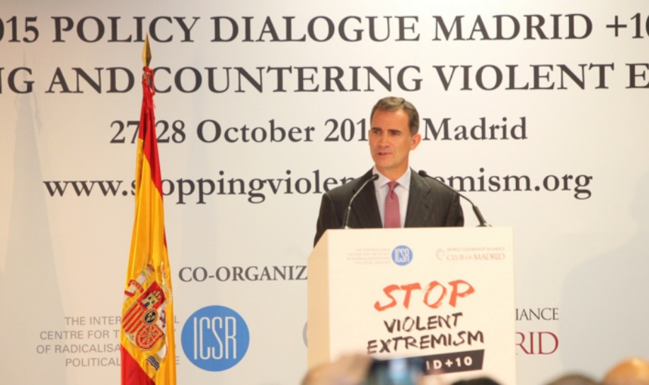 On the morning of October 27, 2015, His Majesty King Felipe VI of Spain arrived at the Palacio Municipal de Congresos in Madrid to officially open the conference, Madrid+10: Preventing and Countering Violent Extremism.