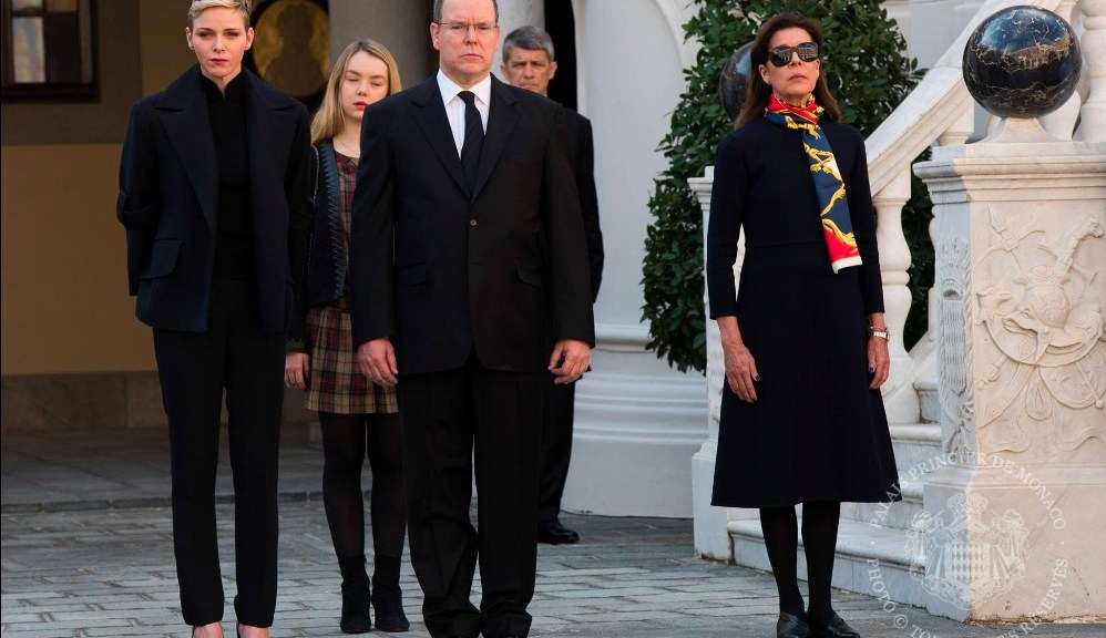 On the morning of Monday, November 16, 2015, Their Serene Highnesses Prince Albert II and Princess Charlene of Monaco, Her Royal Highness Princess Caroline of Hanover and her daughter, Her Royal Highness Princess Alexandra of Hanover, and members of the Gouvernement Princier de Monaco observed a moment of silence in the inner courtyard at the Palais Princier in memory of the innocent victims of last Friday’s terrorist attacks in Paris, France.