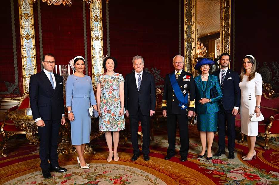 On the morning of Tuesday, May 17, 2022, Their Majesties King Carl XVI Gustaf and Queen Silvia of Sweden welcomed the President of Finland, His Excellency Mr. Sauli Niinistö, and First Lady, Jenni Haukio, at the Hovstallet in Stockholm. The President and the First Lady were invited by His Majesty The King for a two-day state visit to Sweden.