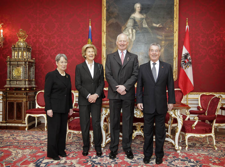Their Serene Highnesses Prince Nikolaus of Liechtenstein and Princess Margaretha of Liechtenstein (Princess of Luxembourg), His Royal Highness Prince Sébastien of Luxembourg, and Their Serene Highnesses Prince Philipp and Princess Isabelle of Liechtenstein.
