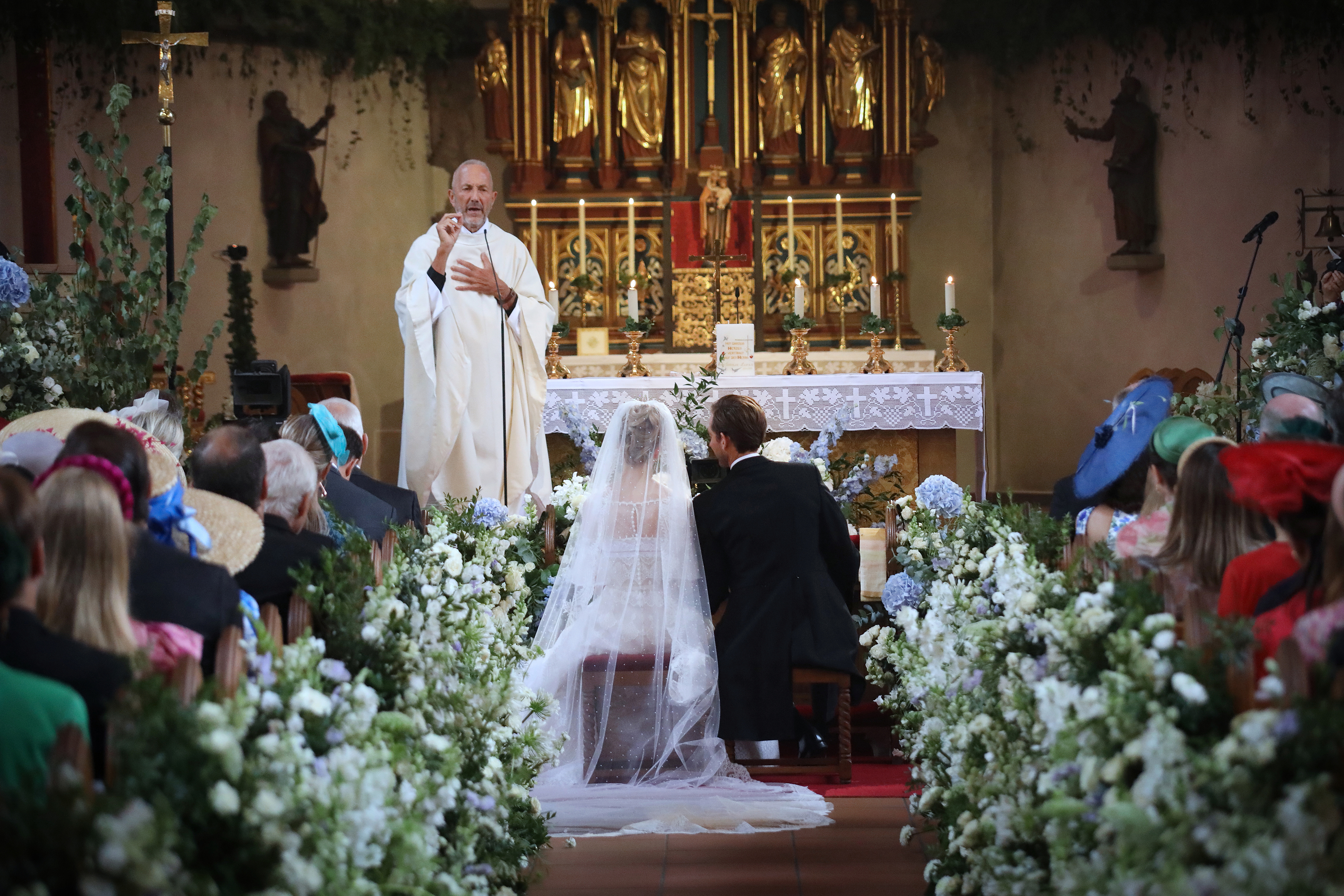 Her Serene Highness Princess Gloria, the Dowager Princess of Thurn and Taxis, Her Serene Highness Princess Elisabeth of Thurn and Taxis, Their Royal Highnesses Crown Prince Alexander and Crown Princess Katherine of Serbia, His Royal Highness Prince Nikola Petrović Njegoš of Montenegro, Their Royal Highnesses Prince and Princess Michael of Kent, Prince Joachim Murat, the groom’s family, the bride’s family, government officials, and distinguished guests.