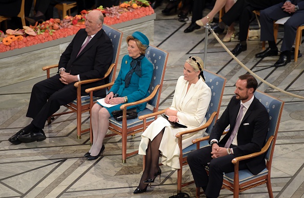 (L-R) Harald V, King of Norway, his wife Queen Sonja, Norway’s Crown Princess Mette-Marit and Crown Prince Haakon attend the Nobel Peace Prize award ceremony in Oslo, Norway, December 10, 2015. The Nobel Peace Prize will be awarded to four civil society groups, who led Tunisia’s transition to democracy, though the country has now been plunged into a state of emergency as it battles the threat of jihadism. AFP PHOTO / ODD ANDERSEN / AFP / ODD ANDERSEN (Photo credit should read ODD ANDERSEN/AFP/Getty Images)