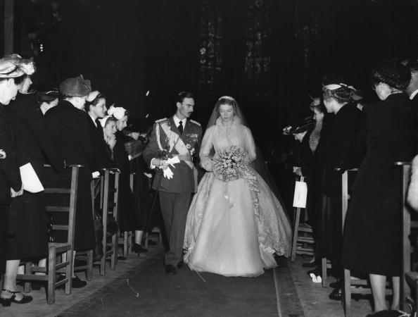 9th April 1953: The bride and groom Princess Josephine-Charlotte of Belgium and Prince Jean of Luxembourg walking down the aisle of Luxembourg’s 13th century cathedral after their marriage ceremony. They became the Grand Duke and Duchess of Luxembourg in 1964. Original Publication: Picture Post – 6495 – Wedding In Luxembourg – pub. 1953 (Photo by Kurt Hutton/Keystone/Getty Images)