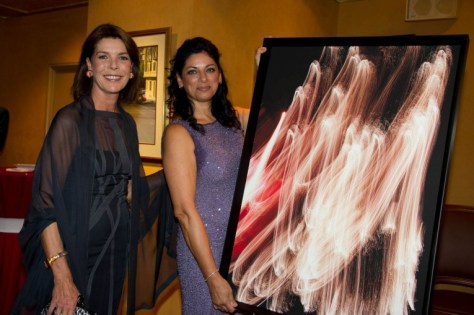 According to a Palais Princier de Monaco statement, the money raised will be used to purchase a new “record and verify” system for the dosimeters used in anti-cancer radiotherapy at the Princess Grace Hospital, thus greatly improving their safety. During the evening, a painting by Sandro Brand, an artist taking part in the GemlucART exhibition-competition, was presented to H.R.H. the Princess of Hanover.